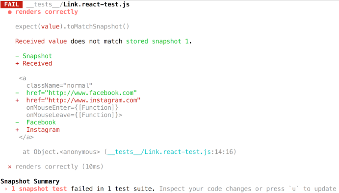 - 두개의 snapshot을 비교를 하는데, 맞지 않으면 Fail이 뜨기 때문에 의도치 않은 변경이 일어나는 것을 방지함