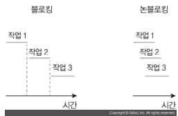 논블로킹 방식 : 이전 작업이 완료될 때까지 멈추지 않고 다음 작업을 수행함
