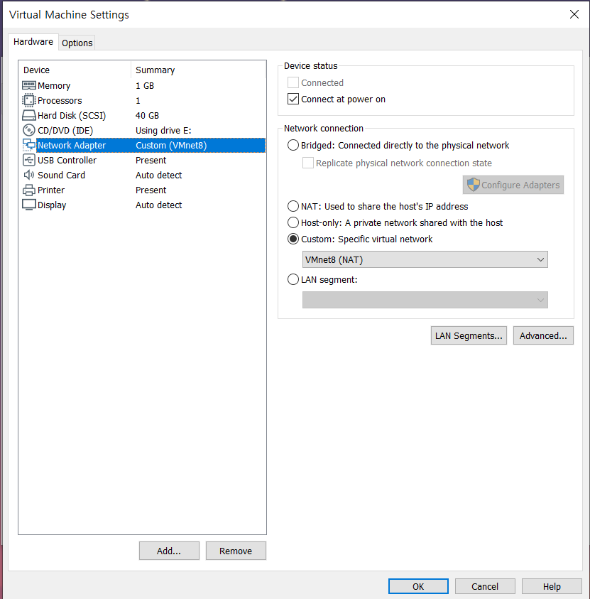 4. [VMnet8 (NAT)] 선택 -> [OK]
